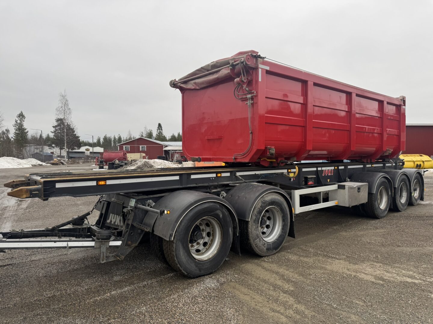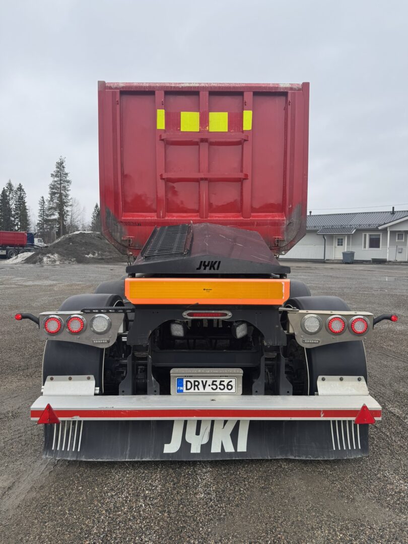 Perävaunu vahvatekoinen Jyki vm.23. Rumpujarruilla, 4 akselia rautajousilla paripyörillä. 5.akseli ilmalla 385/65. 3 ja5 akseli nousulla.parkkivalot ja räpsyt. kokonaispaino 45t.